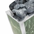 Нагревательный элемент - ТЭН, способствующий быстрому прогреву помещения и меньшему расходу электроэнергии. Сверхлегкий корпус из высокопрочной нержавеющей стали обличен в натуральный камень, что добавляет эстетичности внешнему виду печи и приобретает характер дизайнерского украшения парной.